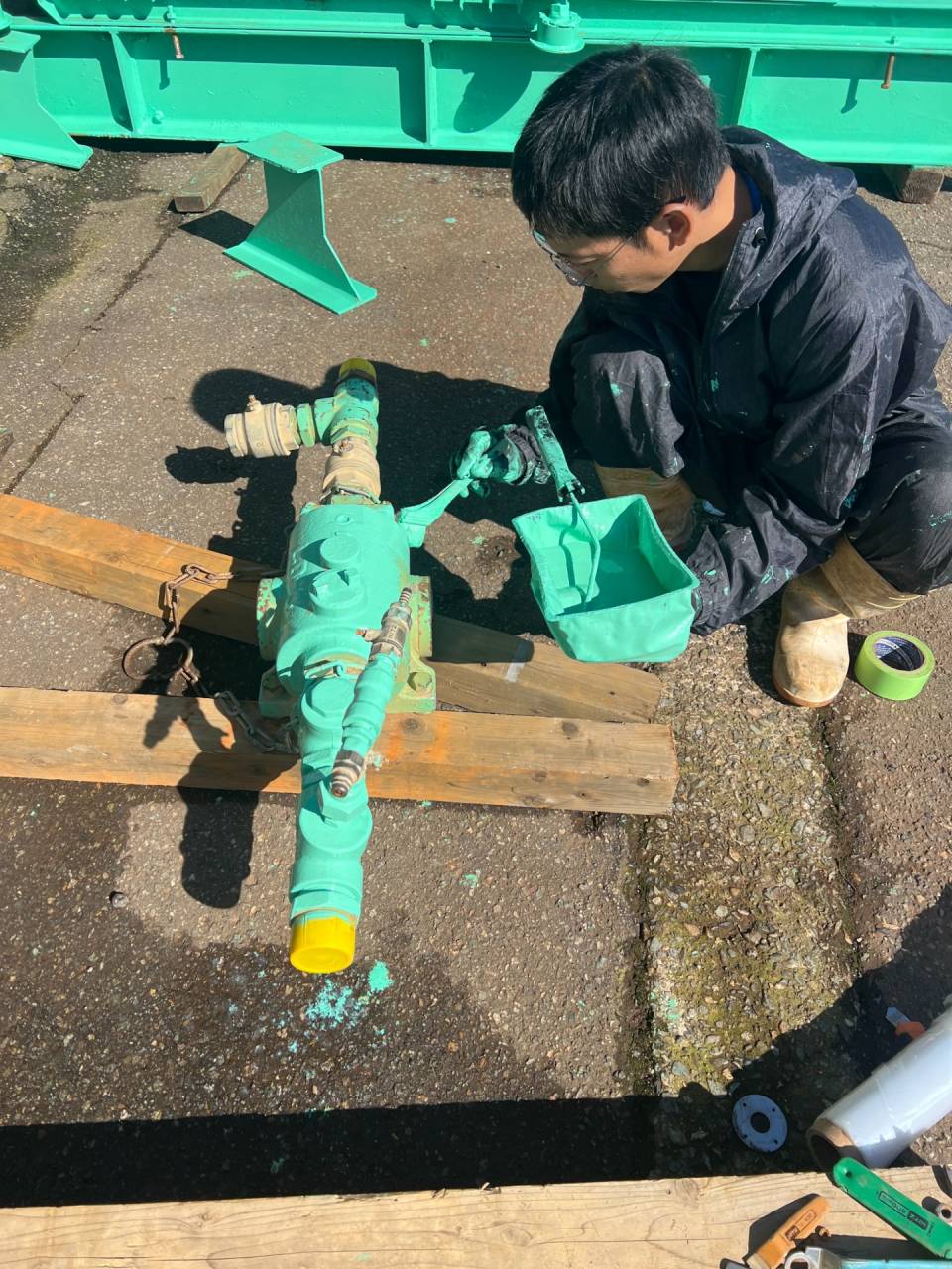 このところ、井戸掘削に使っている機械のメンテナンスと塗装作業を進めています。